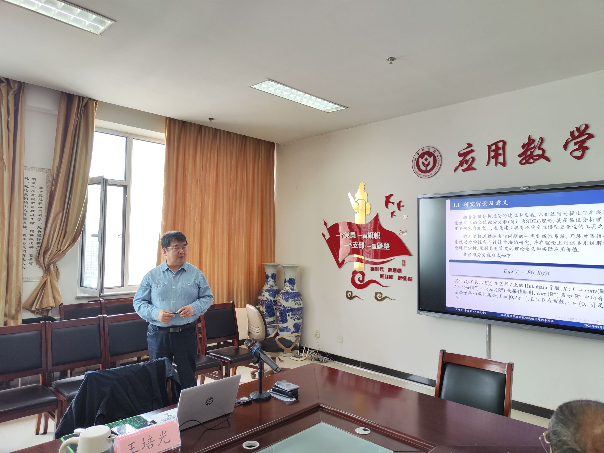 2025 年4 月8 日下午,河北大学坤舆学者、博士生导师王培光教授应邀到304永利集团做了题为“几类集值微分方程初边值问题的平均法”的学术报告。