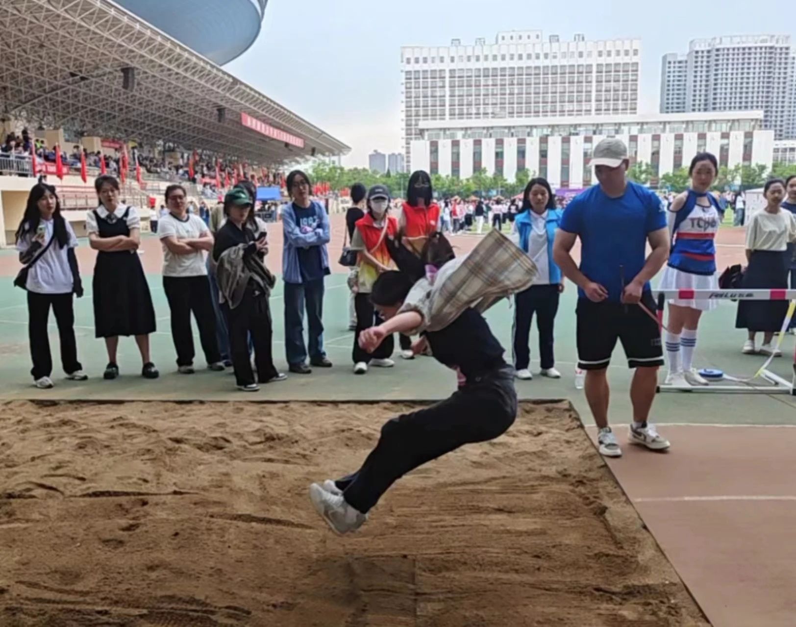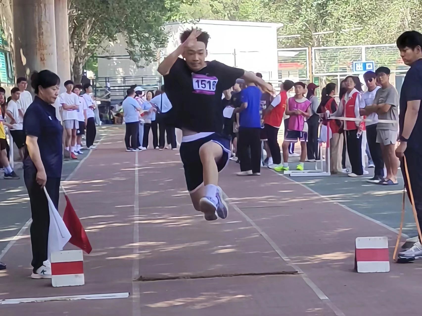 每一次跳跃,都积蓄着力量,每一次腾空,都闪耀着光芒,踏条腾空,跨步一跳,划出弧线,贾晔溦同学以7.95米的成绩以在跳远决赛中夺冠,冯彦博同学在男子组中名列第三,郭雅婷同学也毫不逊色,取得了第七名的好成绩。
