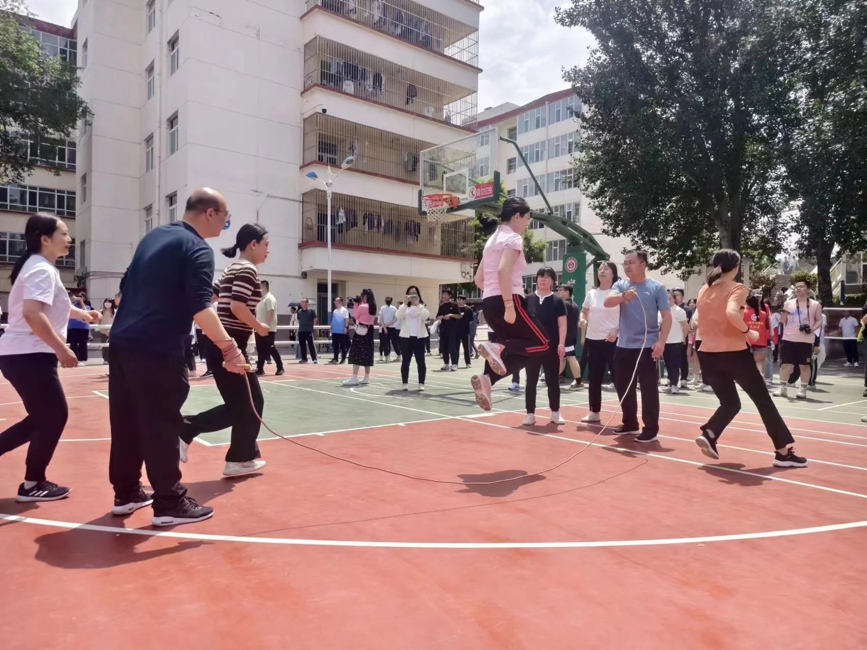 80余人次教职工参加了各项集体和个人项目,充分展现了应数教职工奋发向上、永不放弃的精神,团结进取、勇于争先的风貌。昔日的讲台上,他们严谨庄重,兢兢业业,今日的运动场上,来自304永利集团的教师们,活力满满,在集体跳绳,滚铁环,抢收抢种,投篮等众多项目中展现运动的魅力。