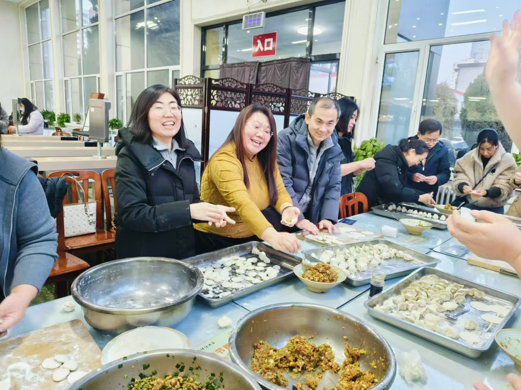 活动当天大家在欢声笑语中,一起包饺子,品尝自己的劳动成果,不仅让教职工们体验了亲手制作传统美食的乐趣,还促进了不同背景的教职工之间的相互了解和友谊。