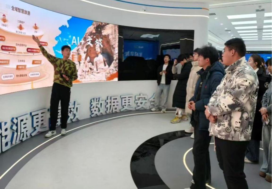 山西清众科技股份有限公司作为深耕人工智能领域的科技企业,聚焦煤炭、文旅、金融、电力、政务等多个垂直行业的数智化转型需求,打造了一系列具有行业影响力的AI解决方案。活动当日,在企业专业讲解员的引导下,学院学子先后参观了清众科技的企业展厅、技术应用展区及创新生态展示区。在“AI+煤炭”展区,讲解员详细介绍了AI安全一体机、“煤博士”智能系统等技术产品在煤矿安全生产、智能化开采中的应用,直观展现了数学算法与人工智能技术如何为传统能源行业赋能。