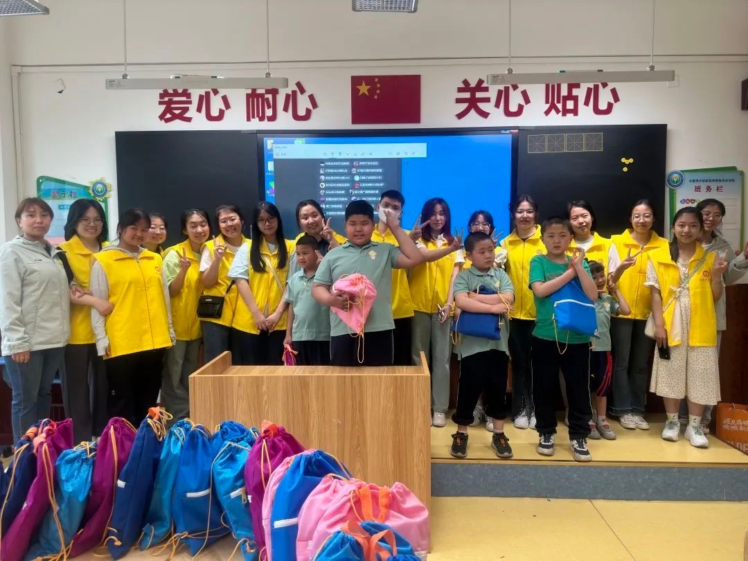 互动环节结束后,志愿者们将事先精心准备的赠送文具礼盒送到每一个孩子手中,与孩子们合影留念,为这次爱的行动画上了一个完美的句号。